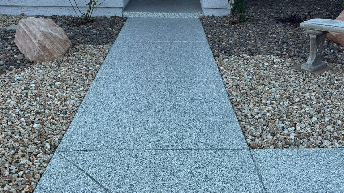Sidewalks and Walkways gray and chipped? Make them look better than new with our concrete coatings!
